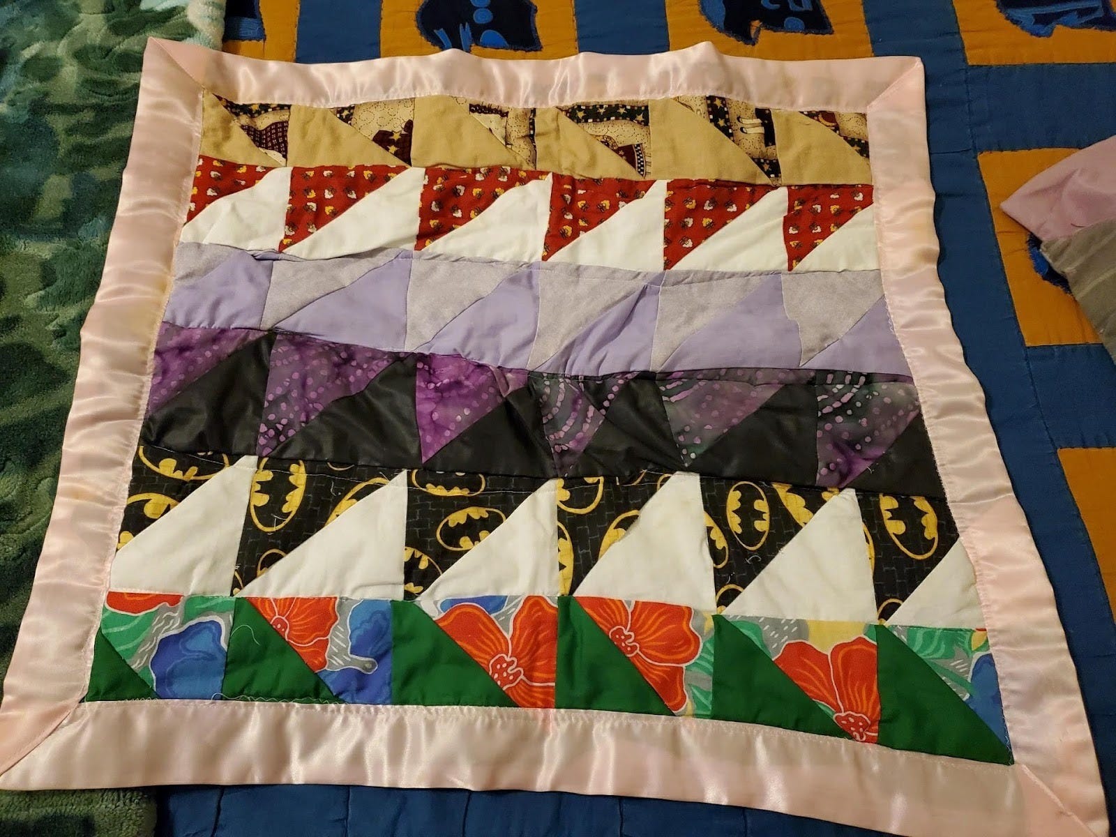 “Hi, Brownie Cookie.” That was the nickname she had given me. “It’s been a while.” My throat began to tighten and become sore as I fought to hold back tears, but the moment she said, “Come over here,” I lost all composure and ran to weep in her arms. I sat there for what felt like hours before she said, “Alright. Get it together. We have a quilt to finish.” I sat up to look at the quilt. It looked like nothing I had seen her work on before. The designs looked like photos. In them was a woman smiling. The woman looked like a younger version of herself.